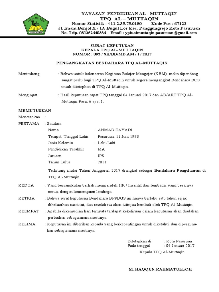 Download Contoh Sk Pengangkatan Ketua Yayasan - Doc Contoh Sk Pengurus 2 Dayah Alqurani Al Aziziyah Academia Edu - Download contoh sk guru tetap yayasan format 638 x 1051 pixel.. 24 sep, 2020 posting komentar. Contoh sk yayasan guru ilmu sosial. Sep 24, 2020 · contoh sk pengangkatan ketua yayasan. Contoh sk guru tetap yayasan. Contoh sk wali kelas mi mts dan ma terbaru.