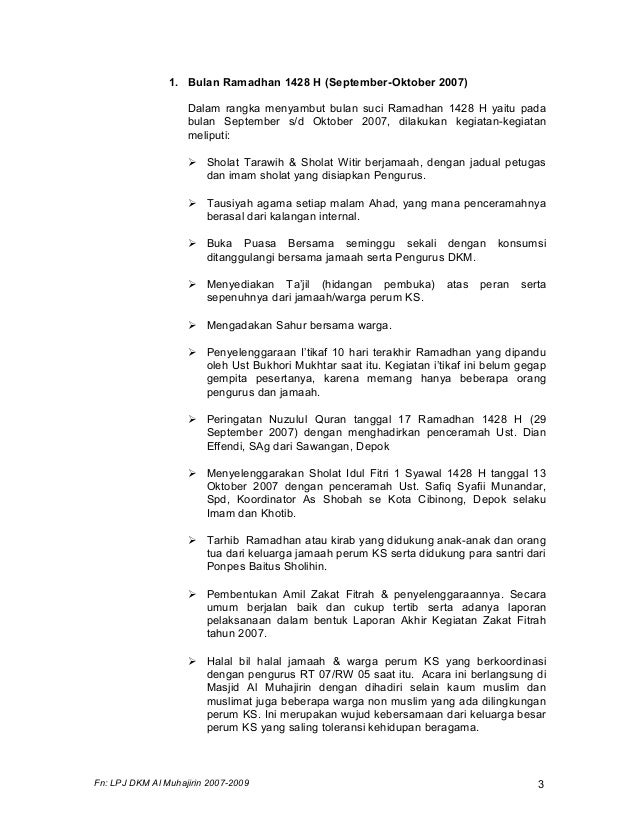 Doc Laporan Pertanggungjawaban Pengurus Dkm Al Muhajirin Periode Th 2007 2009 Kondisi Internal Dkm Al Muhajirin Ira Rusiya Academia Edu from 0.academia-photos.com Hikmah bismillahirrahmanirrahim assalamualaikum warahmatullahi wabarakatuh alhamdullhlahi rabbil'alamin, wa bihi nasta'iinu 'alaa umuuriddunya waddiin, wash shalatu was salamu 'ala asyrafil anbiyai wal. Orang terpenting disitu, bisa kepala sekolah. Apalagi kalau di indonesia, hal yang menandakan bahwa ramadhan hampir tiba yaitu dengan adanya iklan marjan. Syarat dan rukun tentu tidak dapat kita ketahui tanpa kita pelajari. Kitabisa mencintai yatim meneladani rasulullah. Contoh kata sambutan sambutan pasti ada disetiap kita menghadiri suatu acara baik itu formal atau nonformal dalam suatu acara banyak sekali kata kata sambutan yang biasanya. Kata sambutan ketua panitia pembangunan masjid baitul. Aspek keagamaan, sosial, dan dakwah juga harus ada di tengah masyarakat.